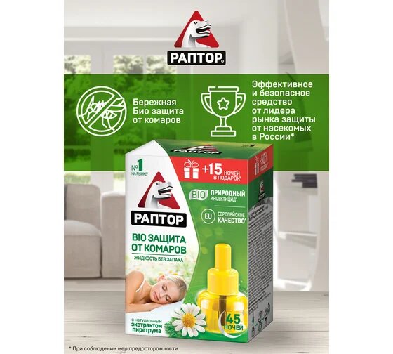 Купить Раптор Жидкость от комаров BIO с экстрактом ромашки 30 ночей 12644 F2354