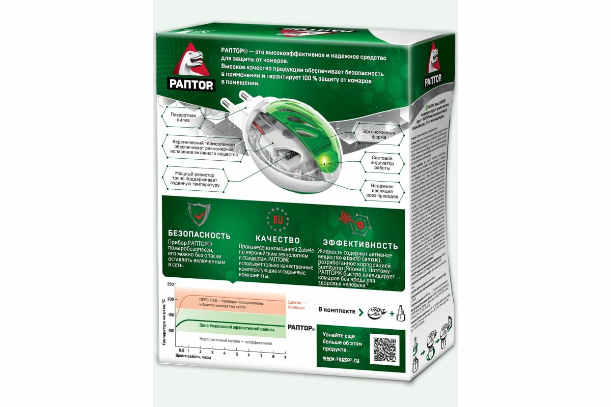 Фумигатор + жидкость Раптор от комаров, 101 г, 20 мл, 30 ночей, зеленый