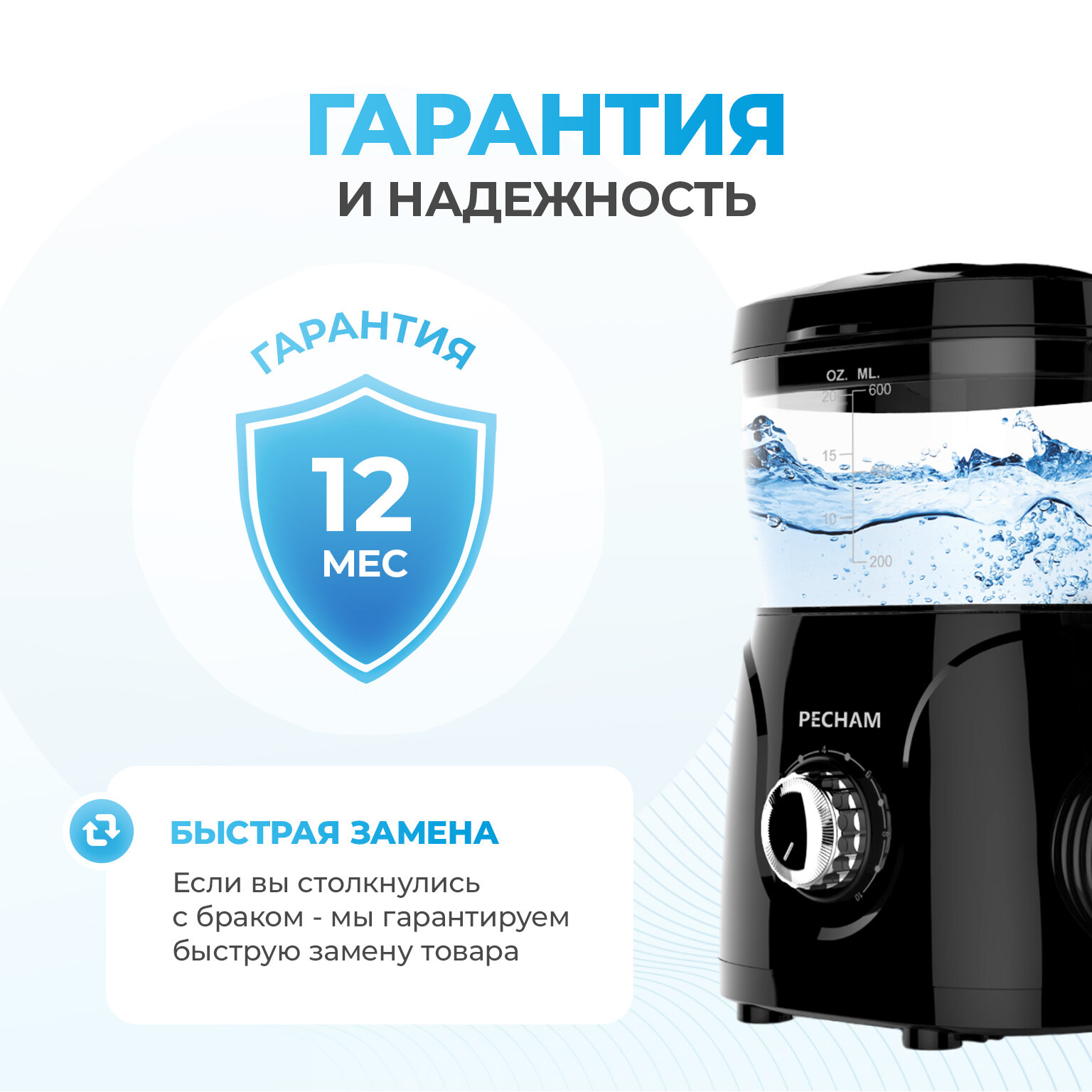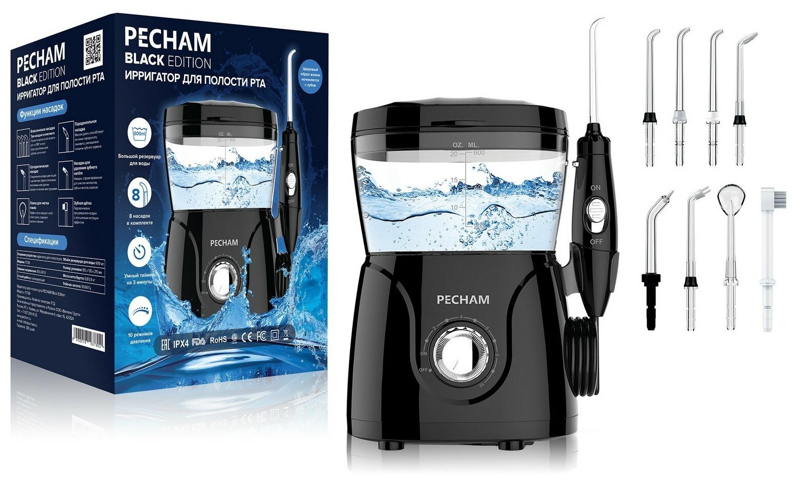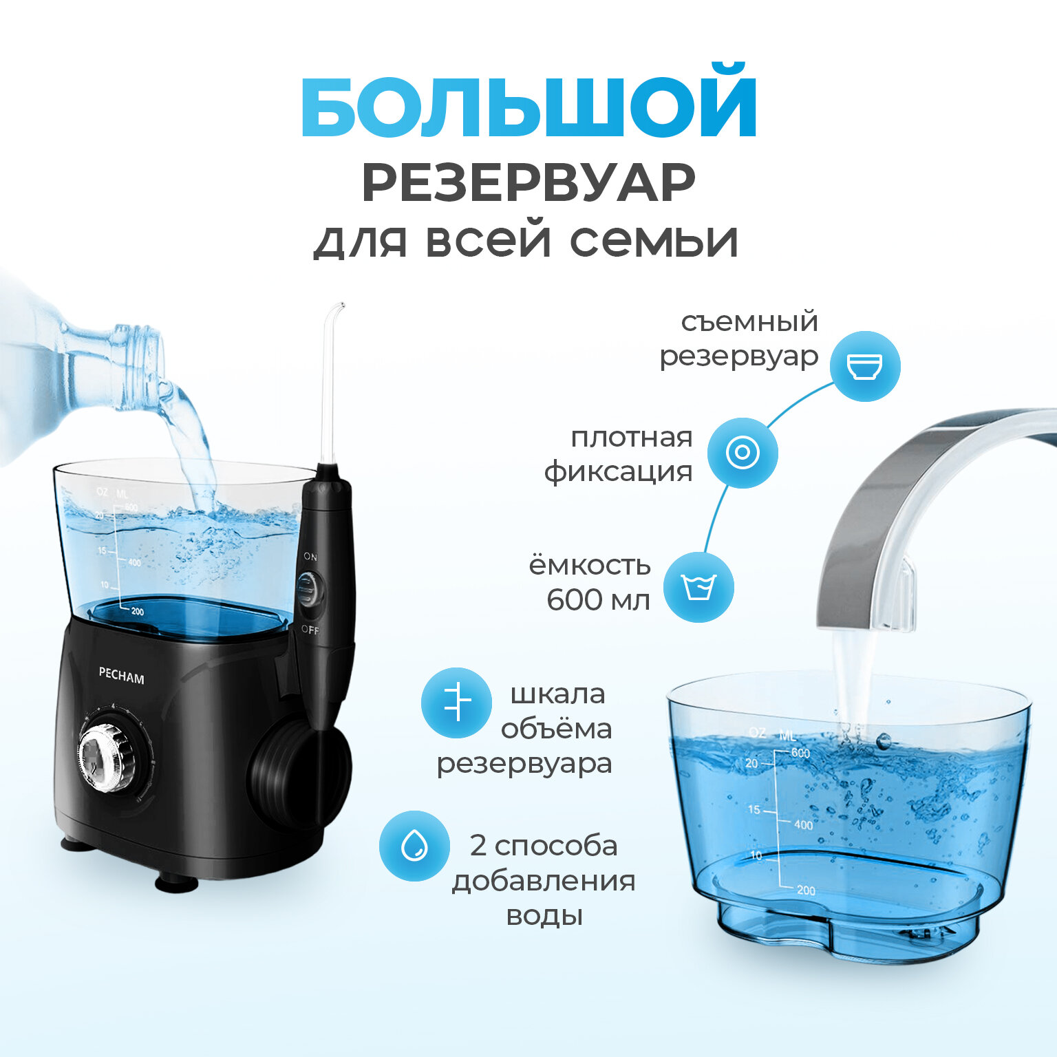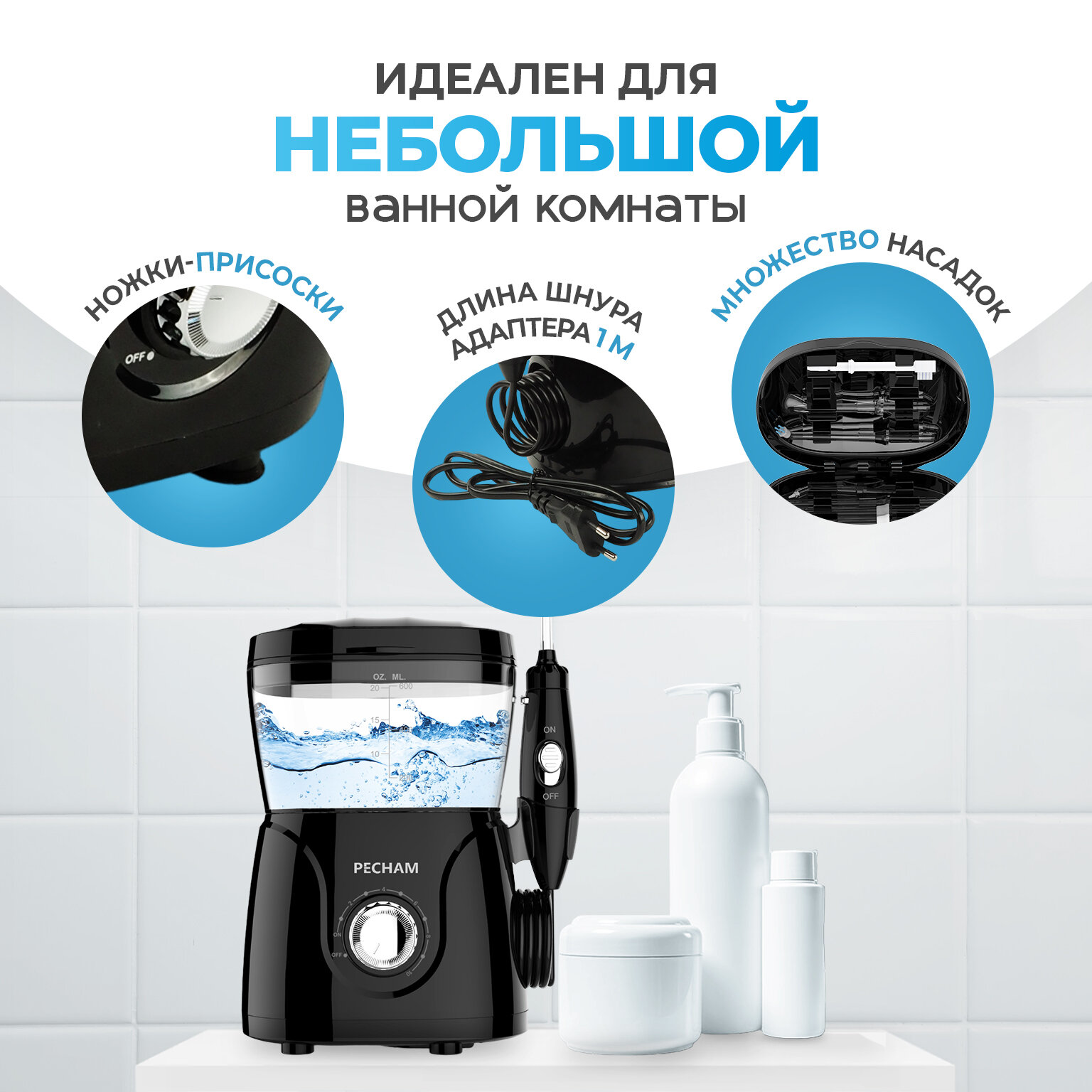 Ирригатор стационарный для полости рта PECHAM Professional Black Edition, 600 мл, 8 насадок, семейный