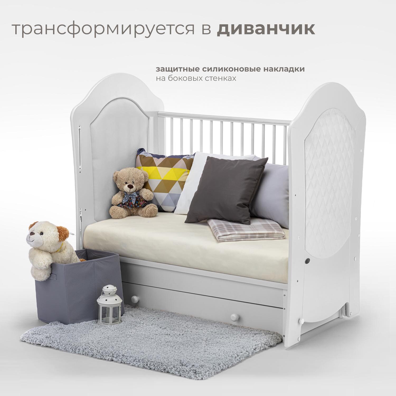 ВДК Детская кровать-трансформер «Слоник» с поперечным маятником, цвет белый