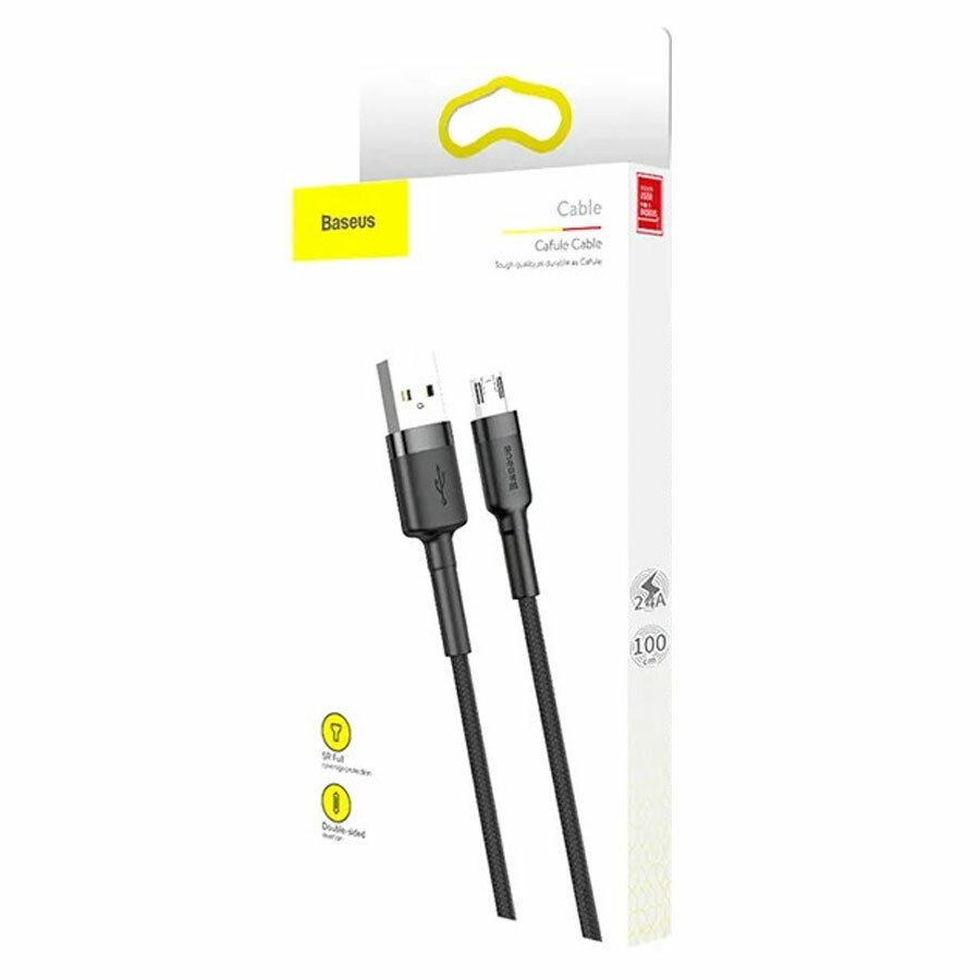 Купить Кабель USB BASEUS Cafule USB - MicroUSB, 2.4А, 12W, 1 м, черный+серый
