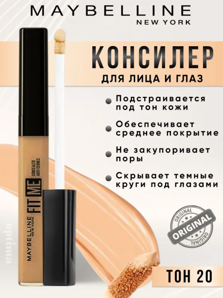 Maybelline New York Консилер для лица и глаз FIT ME Concealer Anti-cernes, 20 Натурально-бежевый, 6.