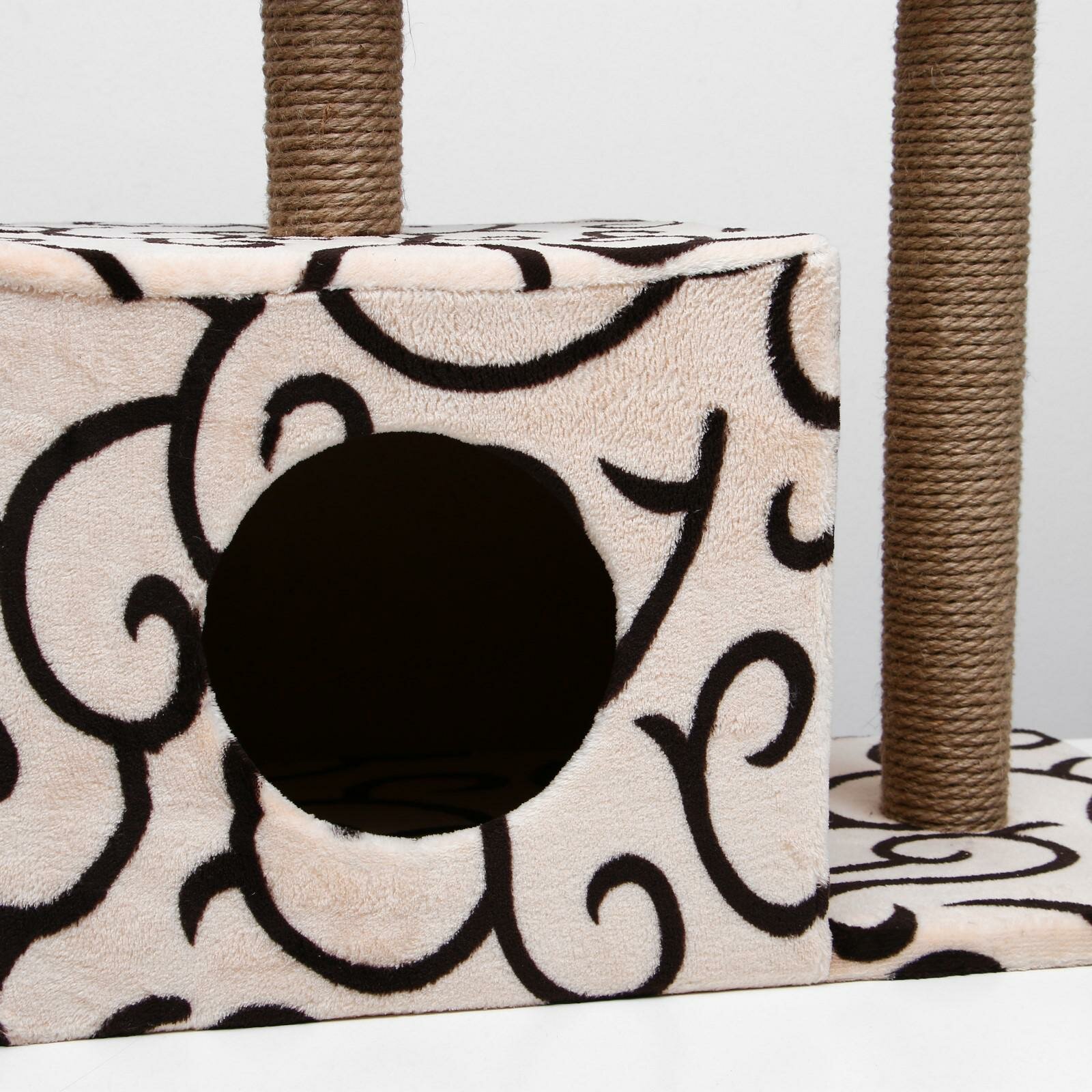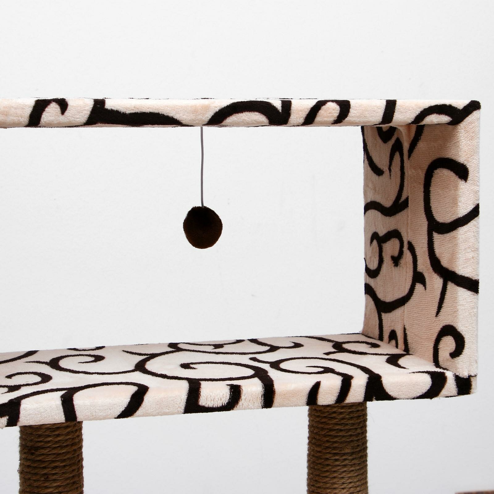 Купить Домик для кошек с когтеточкой "Куб", с мезонином и игрушкой, 60 х 35 х 85 см, микс цветов