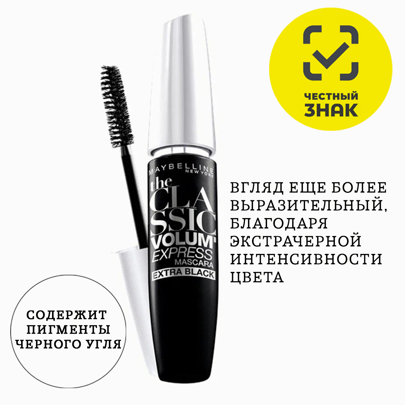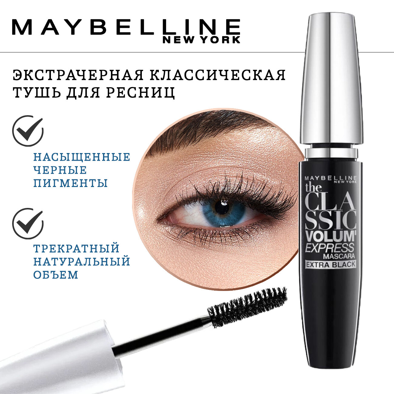 Maybelline New York Тушь для ресниц The Classic Volum' Express Extra Black, экстрачерный