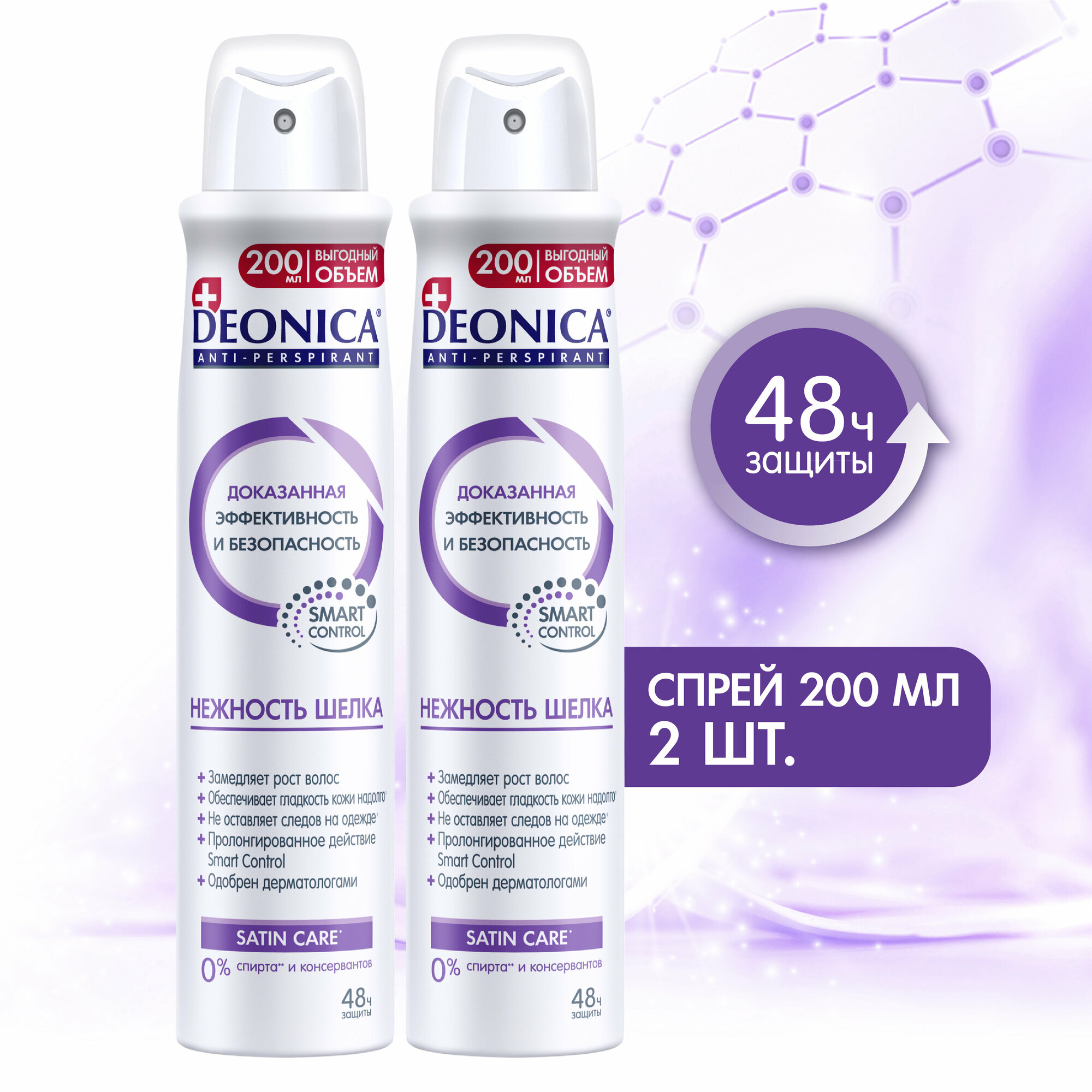 Deonica Антиперспирант "Нежность шёлка". Женский. Спрей, 200 мл., 2 шт
