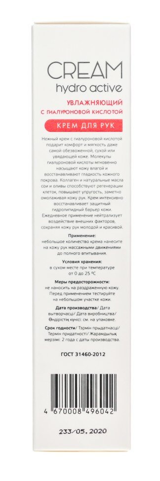 Крем для рук увлажняющий "Hydro Active" с гиалуроновой кислотой (4053), 100 мл