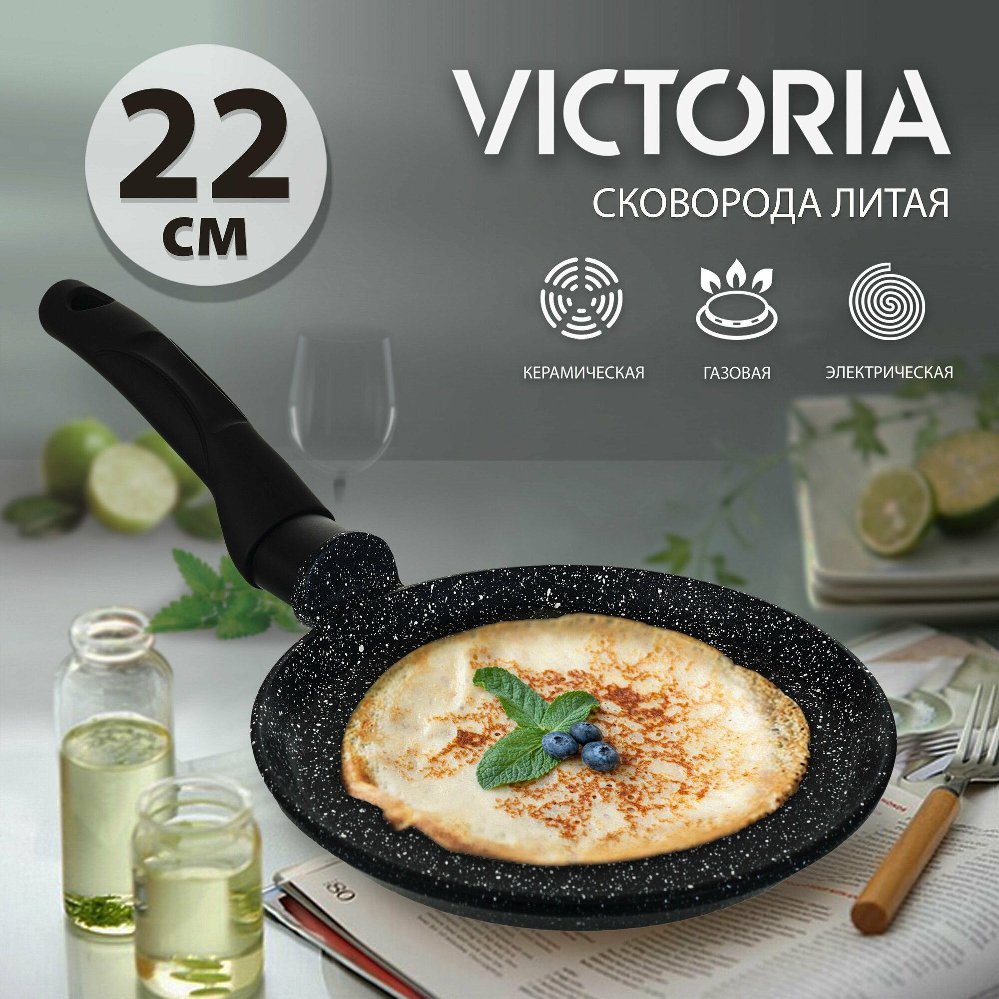 Сковорода блинная VICTORIA "Гранит", 22 см, черная