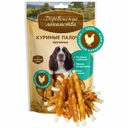 Лакомства деревенские для собак куриные палочки крученые (90 гр)
