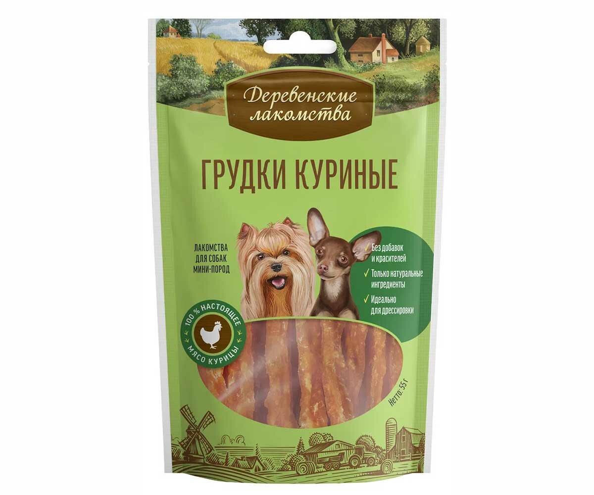 Деревенские лакомства "Грудки куриные" для минипород собак пакет, 55 гр