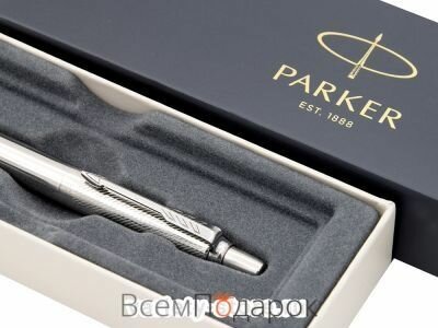 Ручка шариковая PARKER "Jotter Premium Bond Street Black Grid CT", корпус черный лак с гравировкой, нержавеющая сталь, синяя, 1953195