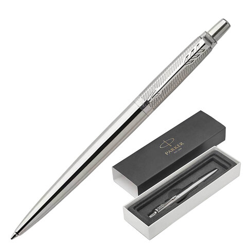 Ручка шариковая PARKER "Jotter Premium Stainless Steel Diagonal CT", корпус серебристый с гравировкой, синяя, 1953197
