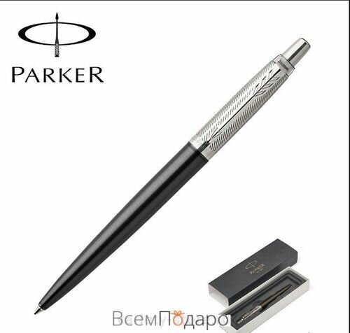 Ручка шариковая PARKER "Jotter Premium Bond Street Black Grid CT", корпус черный лак с гравировкой, нержавеющая сталь, синяя, 1953195