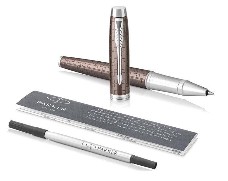 Ручка-роллер PARKER "IM Premium Brown CT", корпус коричневый с гравировкой, хромированные детали, черная, 1931678