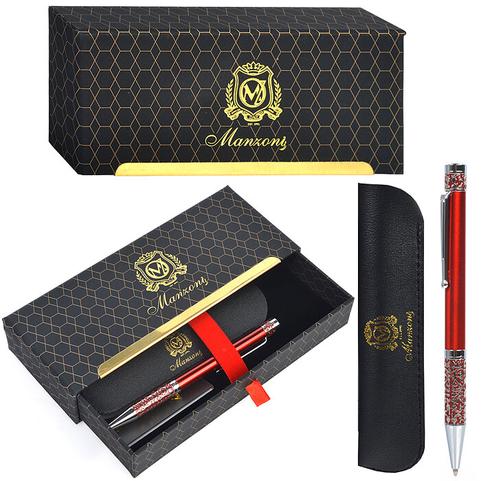 Шариковая ручка Manzoni MARINELLA цвет корпуса: черный футляр кожзам KR405B-01M