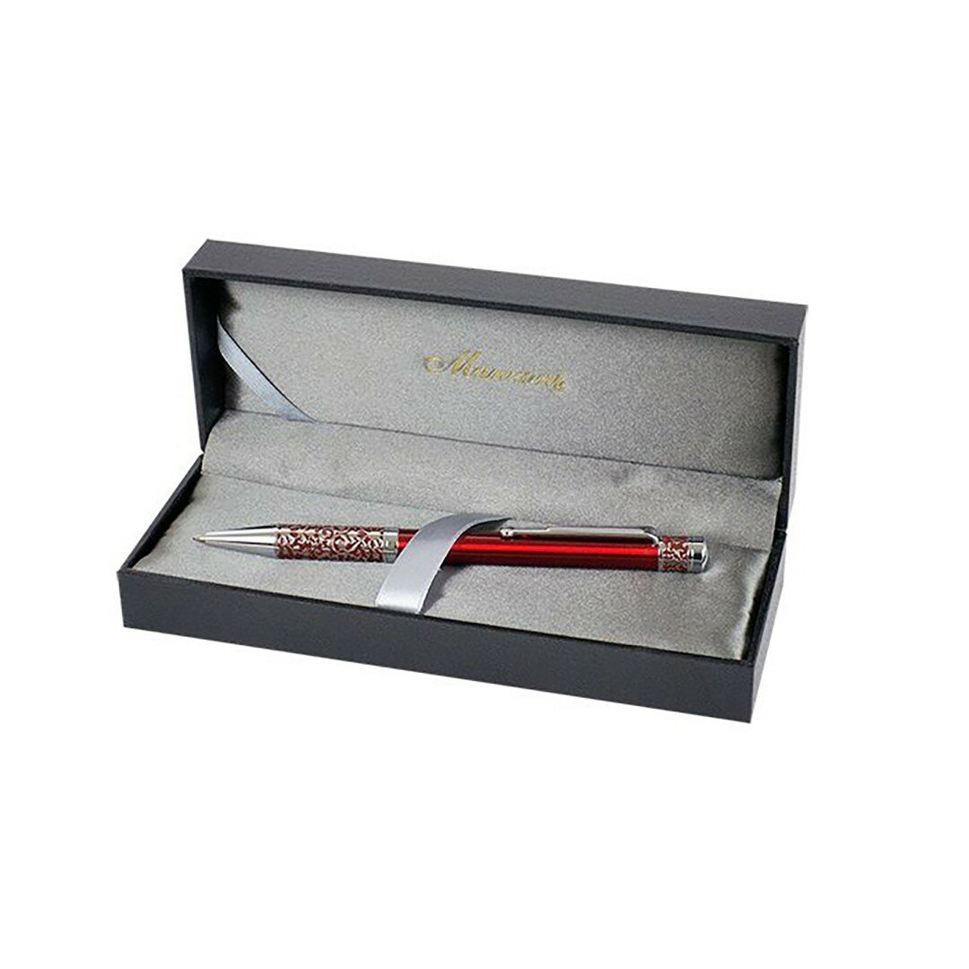 Ручка в футляре механическая (поворотная) Marinella 1,0мм металлический черный/серебристый корпус синяя (картонная упаковка) (16018)