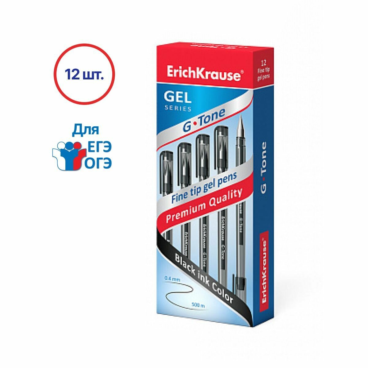 ErichKrause Набор гелевых ручек G-Tone, 0.4 мм, 17810, черный цвет чернил, 12 шт.