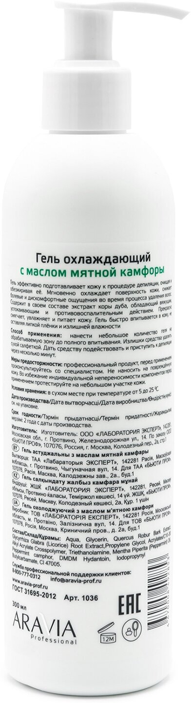 ARAVIA PROFESSIONAL Средства до и после депиляции Гель охлаждающий с маслом мятной камфоры, 300 мл.