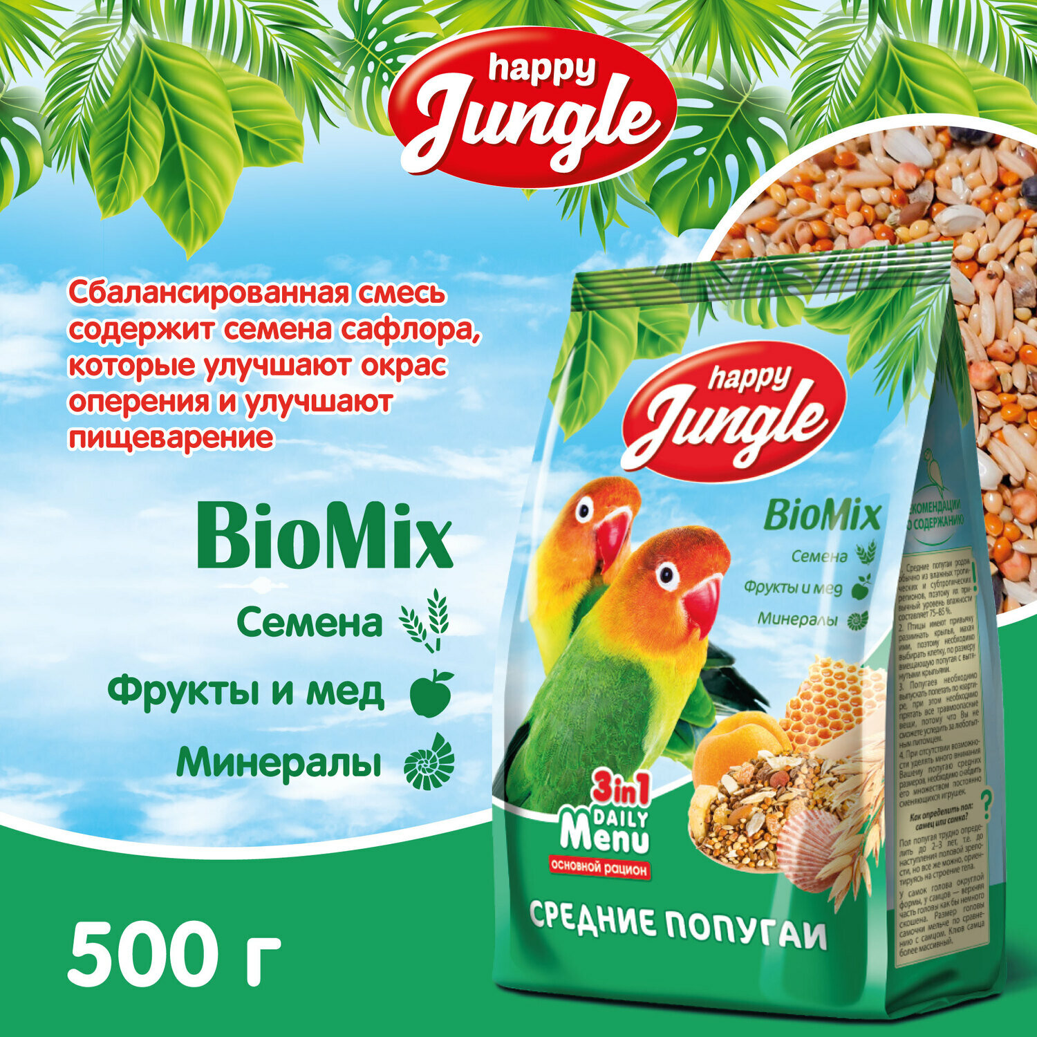 Корм для птиц HAPPY JUNGLE для средних попугаев 500г