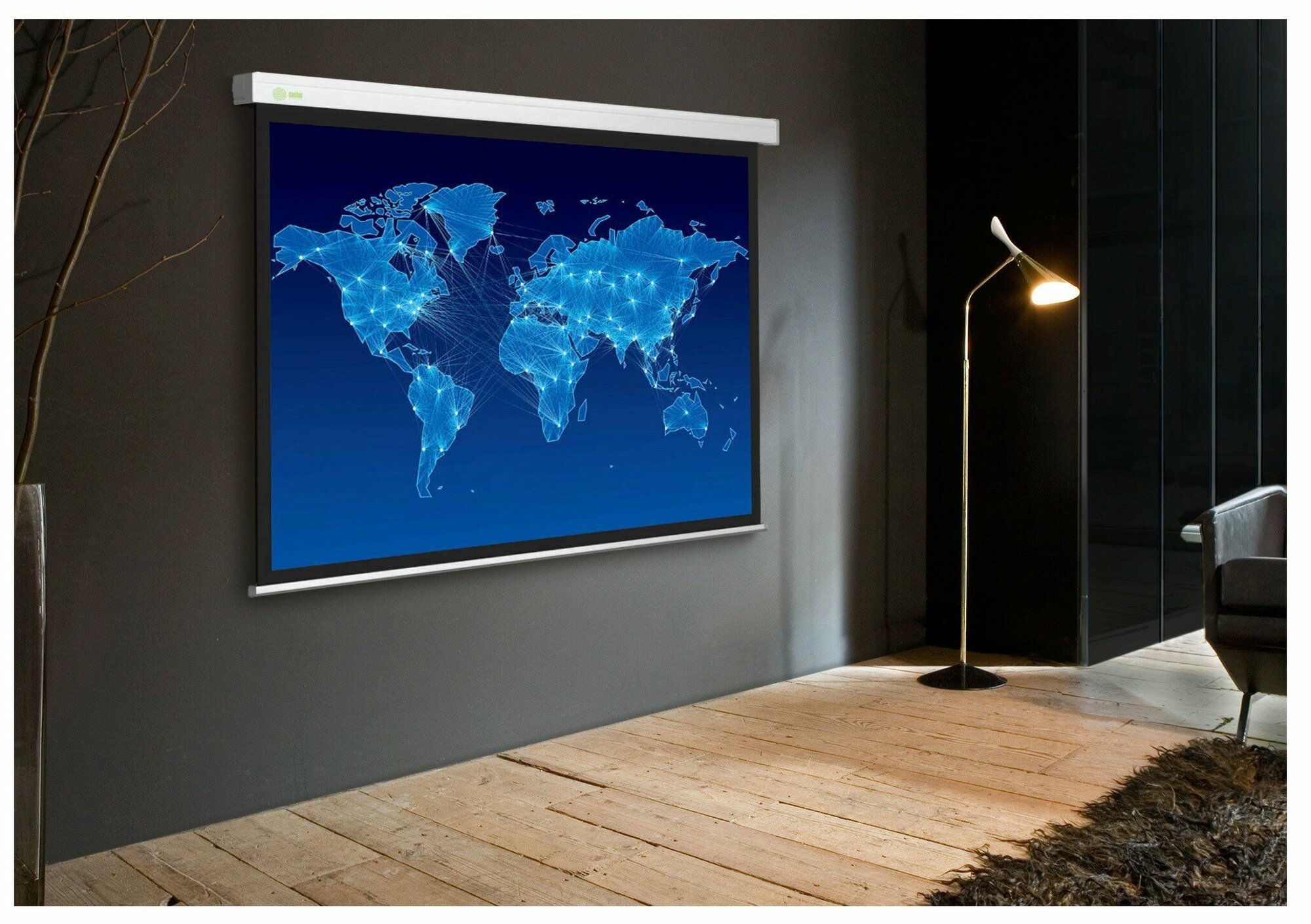 | Плюсы: | лично мне нравится качество, чисто белый не замятый. в комплекте все для крепления и даже верёвочка для подвеса. кстати по началу может заедать, решается все просто нужно довольно резко дёрнуть за край экрана у левого верха. |