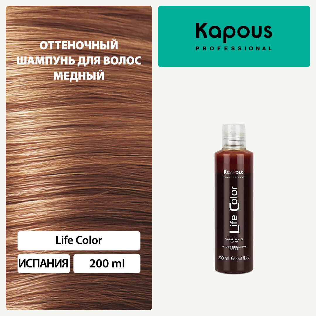 Kapous Professional Life Color Шампунь оттеночный для волос, Медный, 200 мл