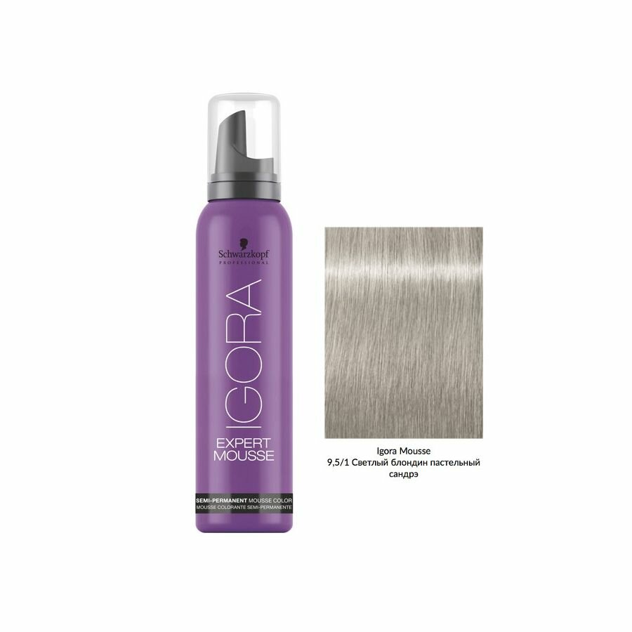 Schwarzkopf Professional Igora Expert Mousse Тонирующий мусс для волос 100 мл, цвет 9,5/1 Светлый блондин пастельный сандрэ