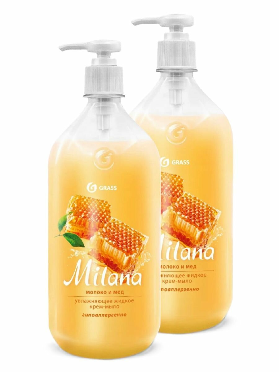 Купить Крем-мыло жидкое увлажняющее "Milana Молоко и Мед" (флакон 1000 мл), 2 шт