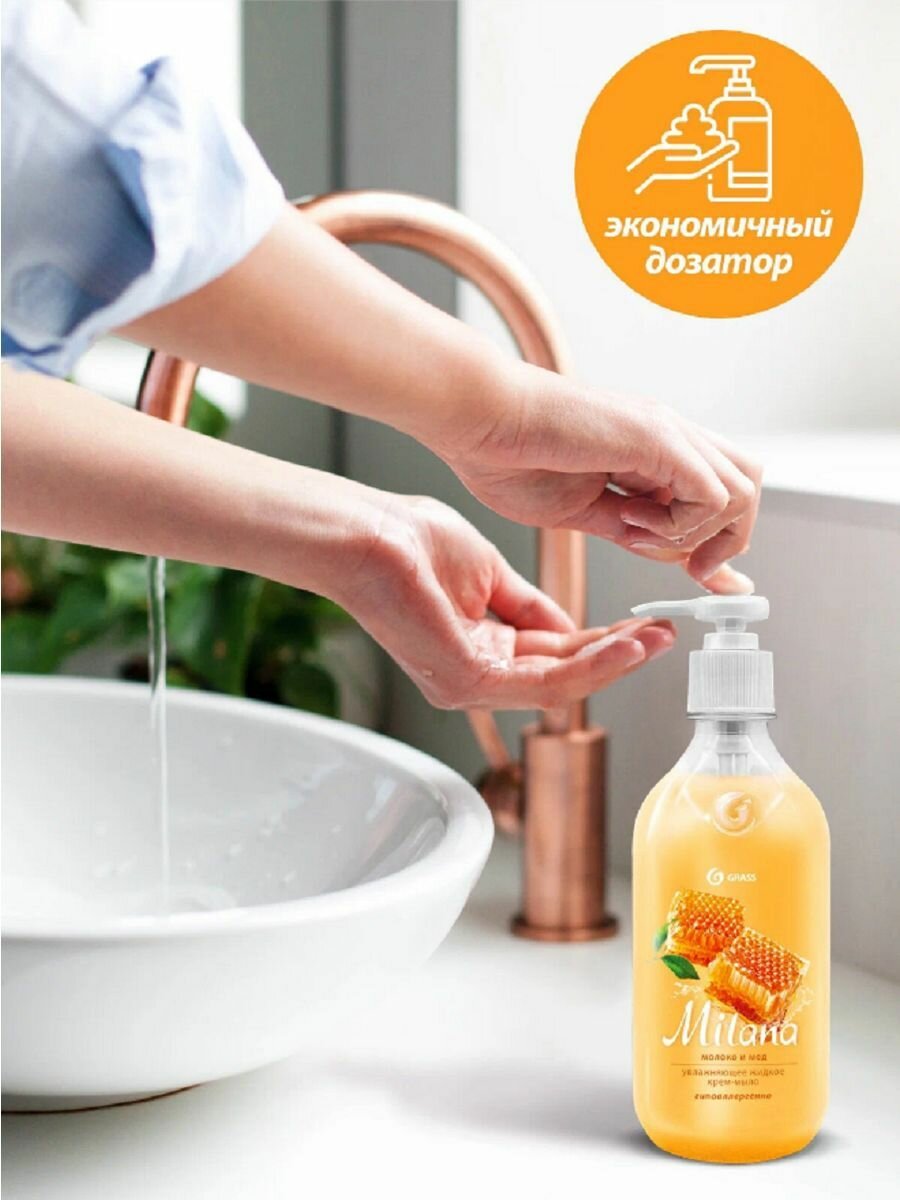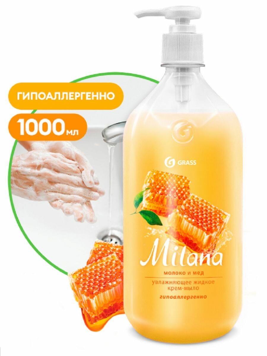 GRASS Жидкое крем-мыло Молоко и мед, 1 л
