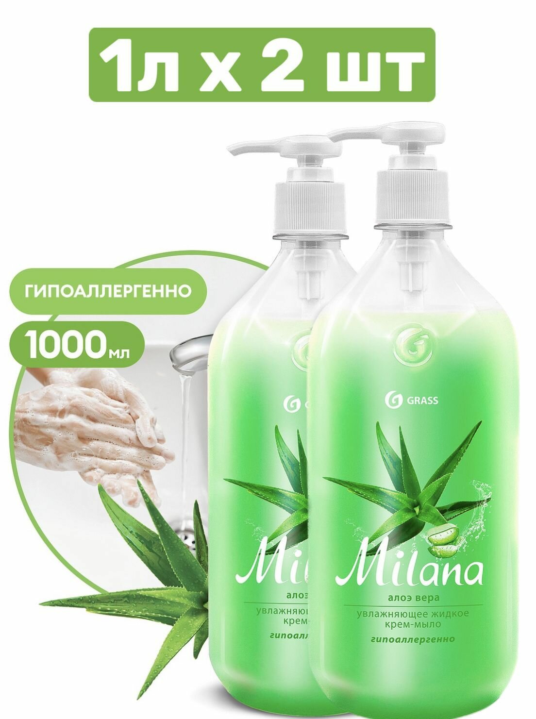 Купить Крем-мыло жидкое увлажняющее "Milana Алоэ Вера" (флакон 1000 мл), 2 шт