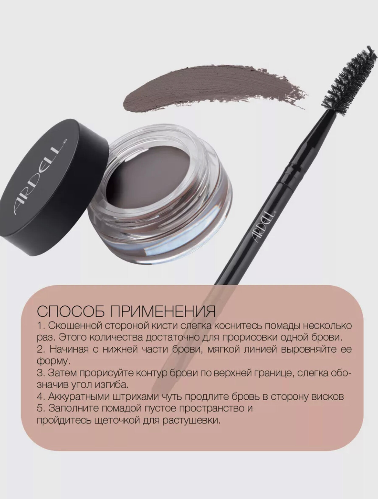 Ardell Brow Pomade (Medium brown) Влагостойкая помада для бровей с кистью, 3г (тон средне-корич)