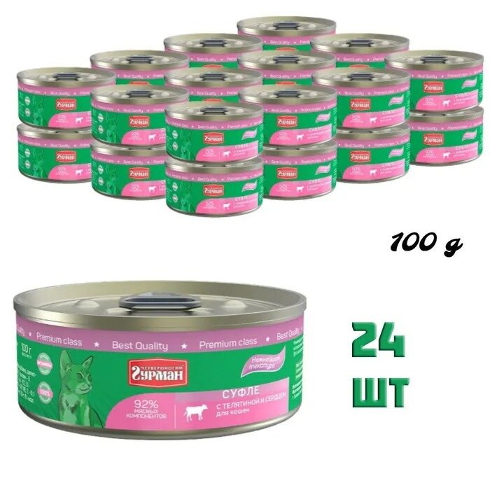 Купить Четвероногий Гурман консервы для кошек Суфле с Телятиной и сердцем 100г (24 штуки)