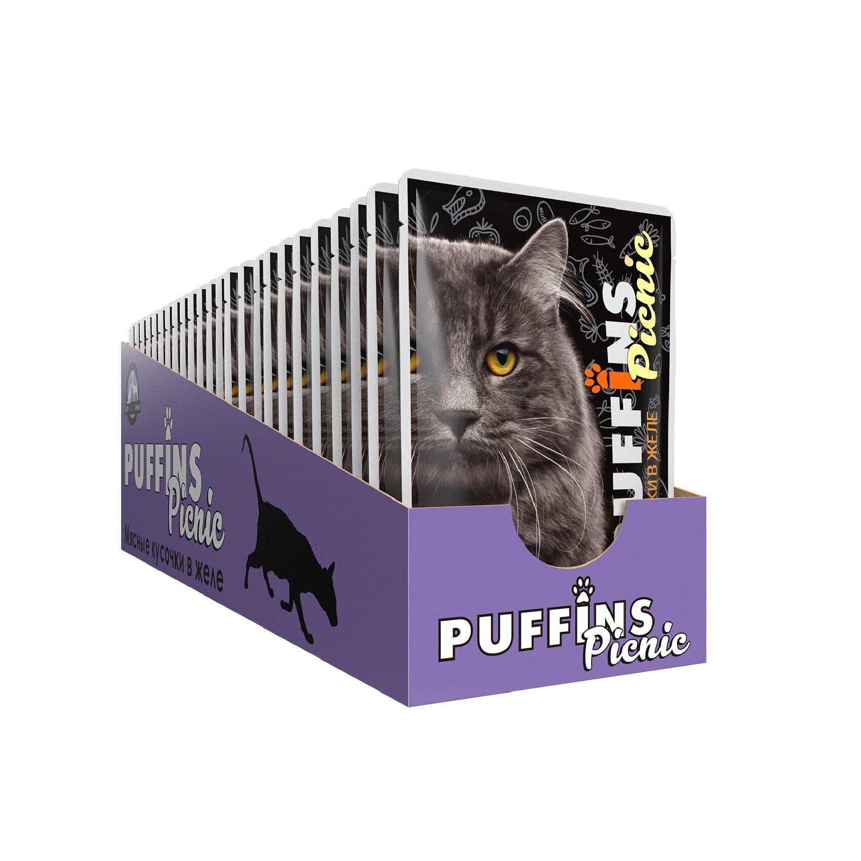 PUFFINS для взрослых кошек с мясным ассорти в нежном желе (100 гр х 24 шт)
