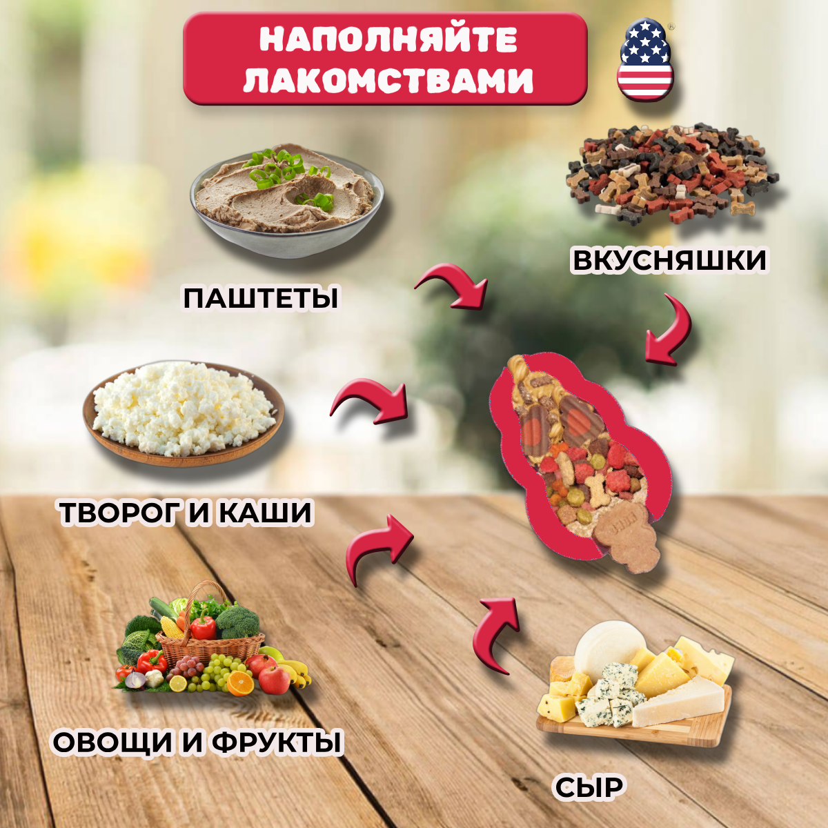| Минусы: | нельзя заполнить сухим кормом - отверстие большое! Только паштет с предварит заморозкой! |
