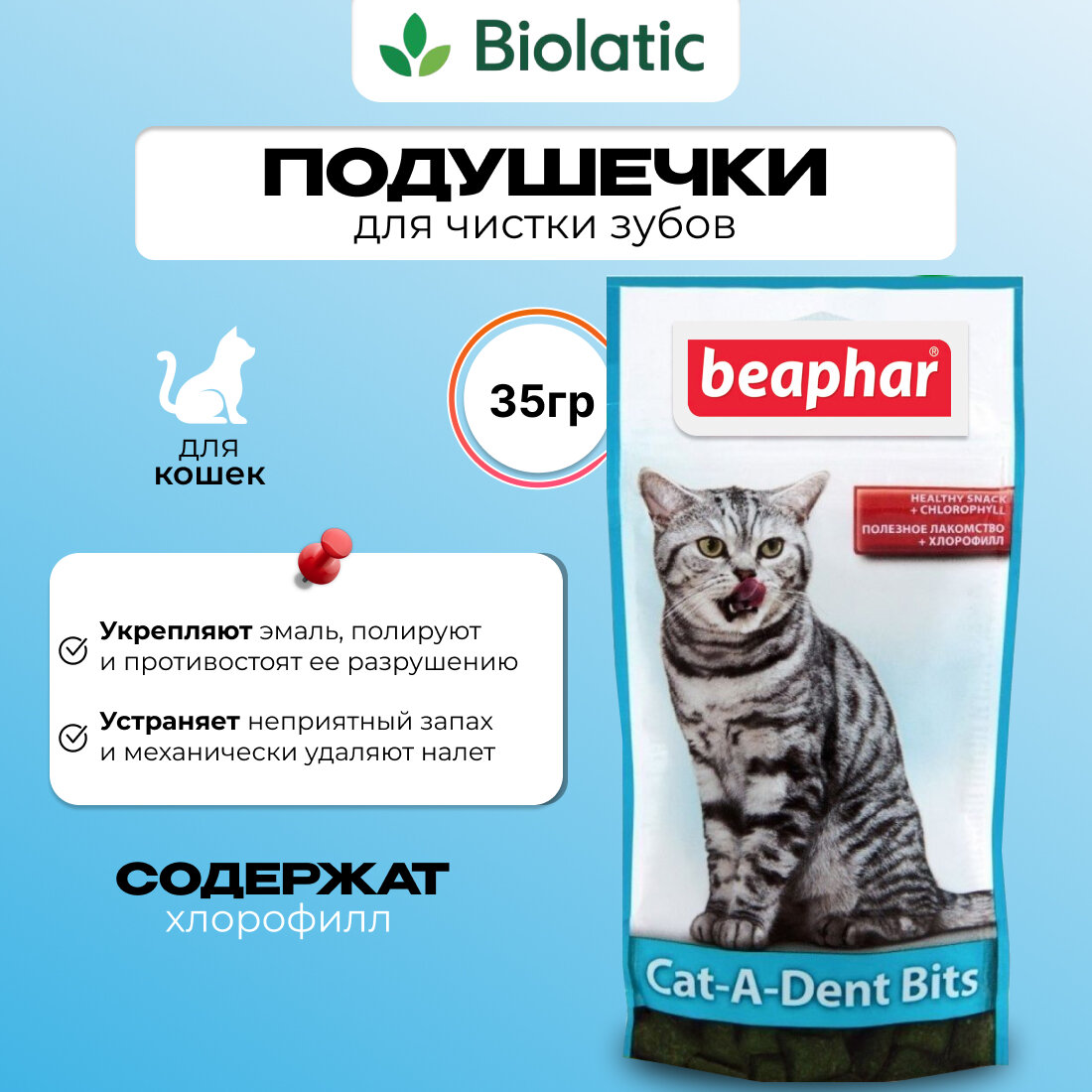 Лакомство для кошек Beaphar Cat-A-Dent Bits подушечки для чистки зубов, 35 г