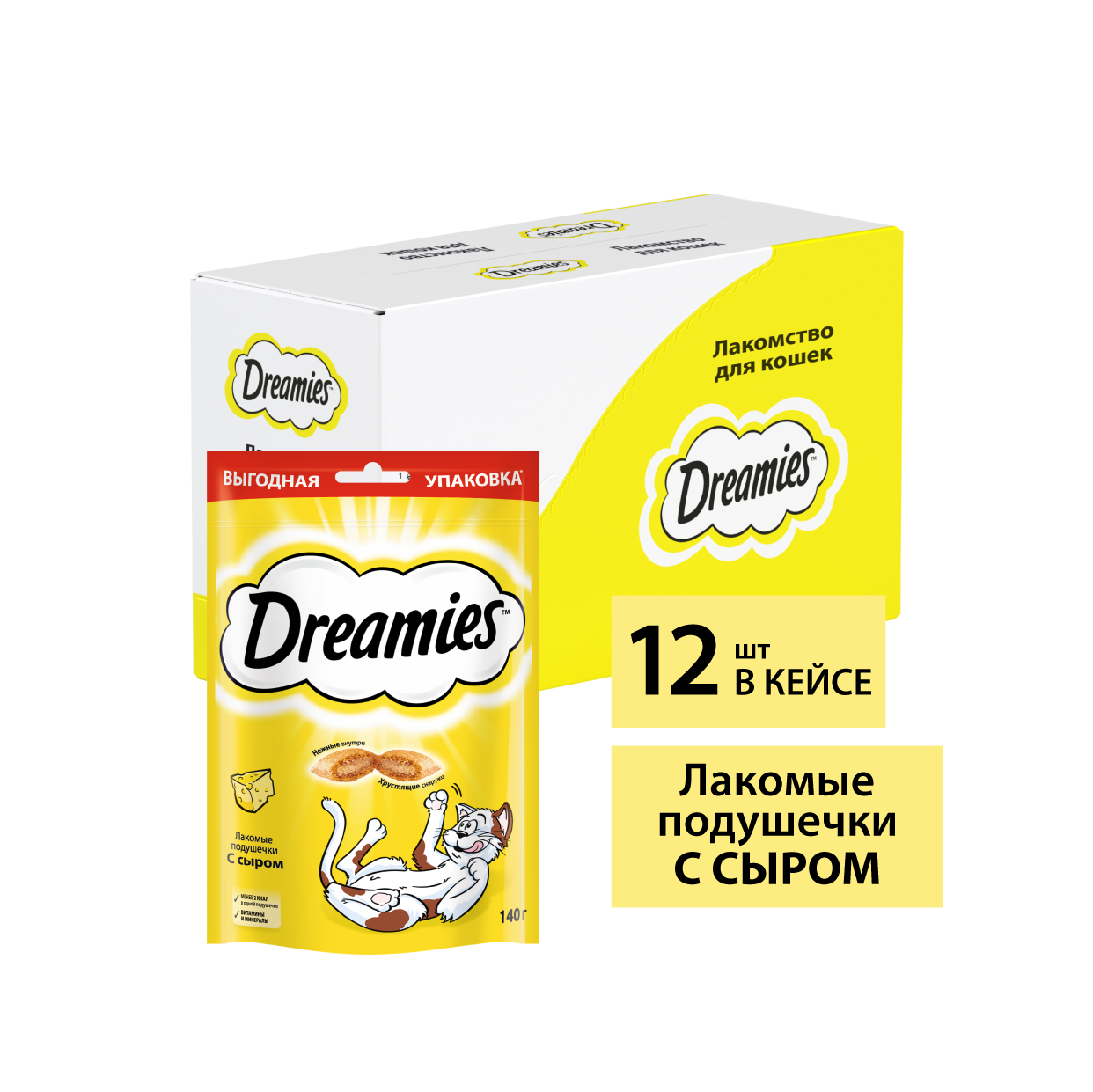 Лакомство Dreamies подушечки для кошек, с сыром, 140 г х 12 шт