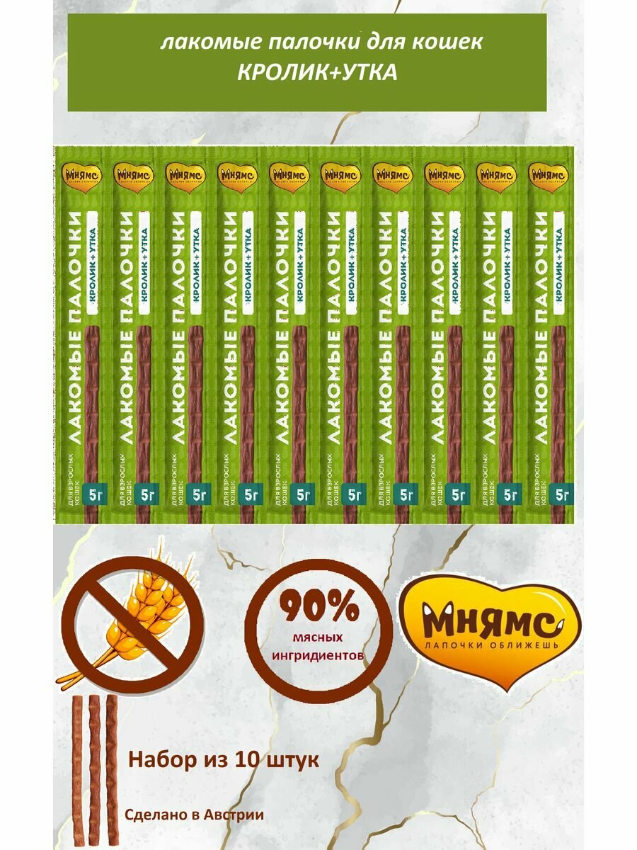 Мнямс лакомые палочки для кошек с уткой и кроликом, 13,5 см - 5 г х 10 шт