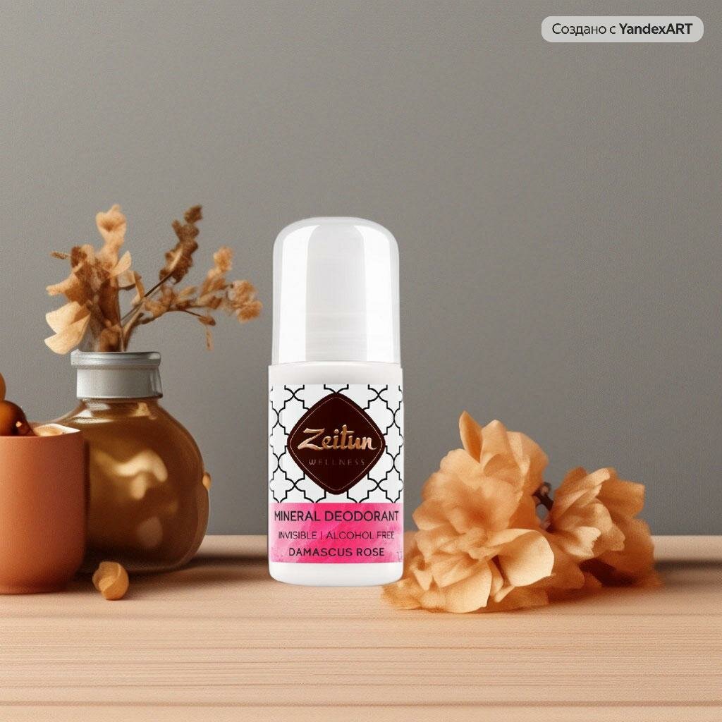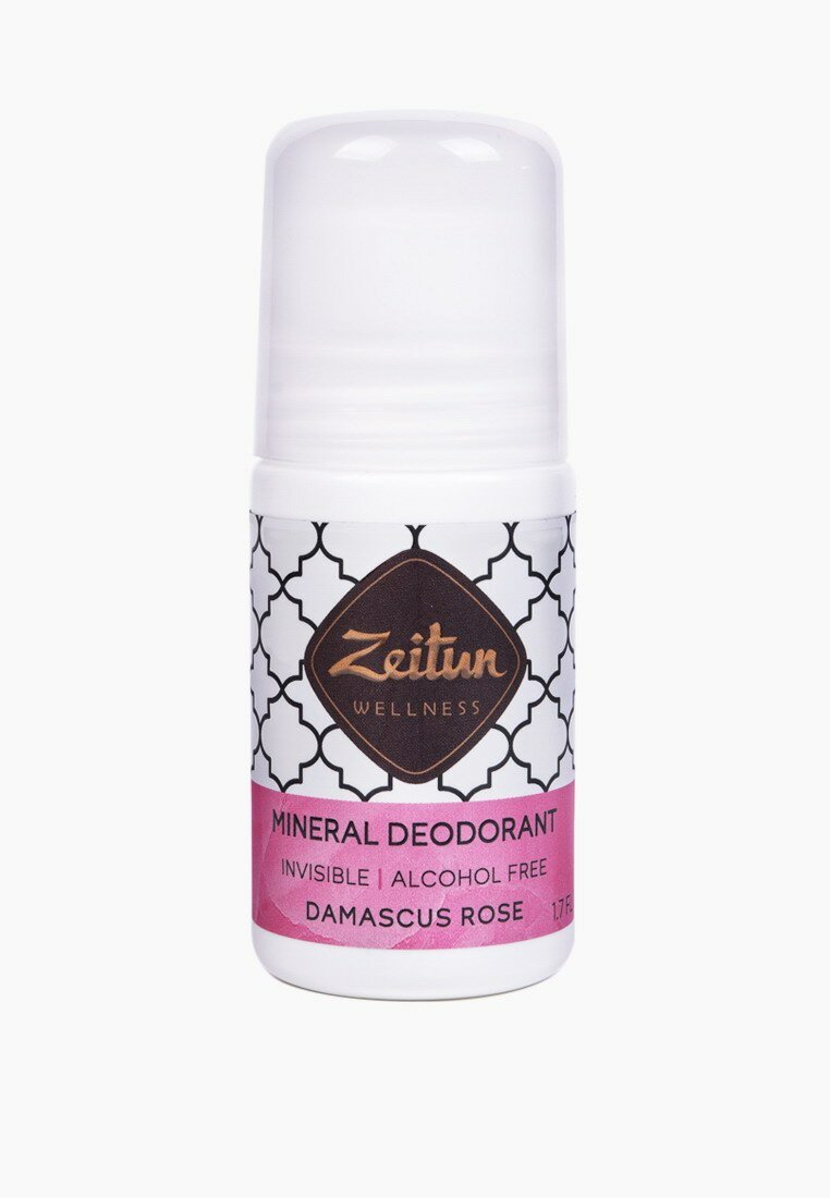 ZEITUN Дезодорант натуральный женский Дамасская роза, минеральный шариковый с коллоидным серебром, 50 мл
