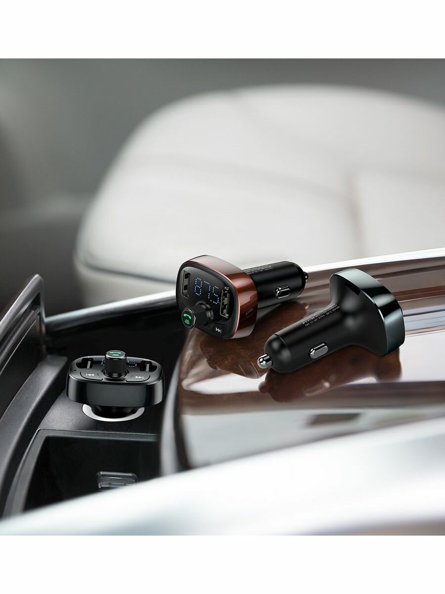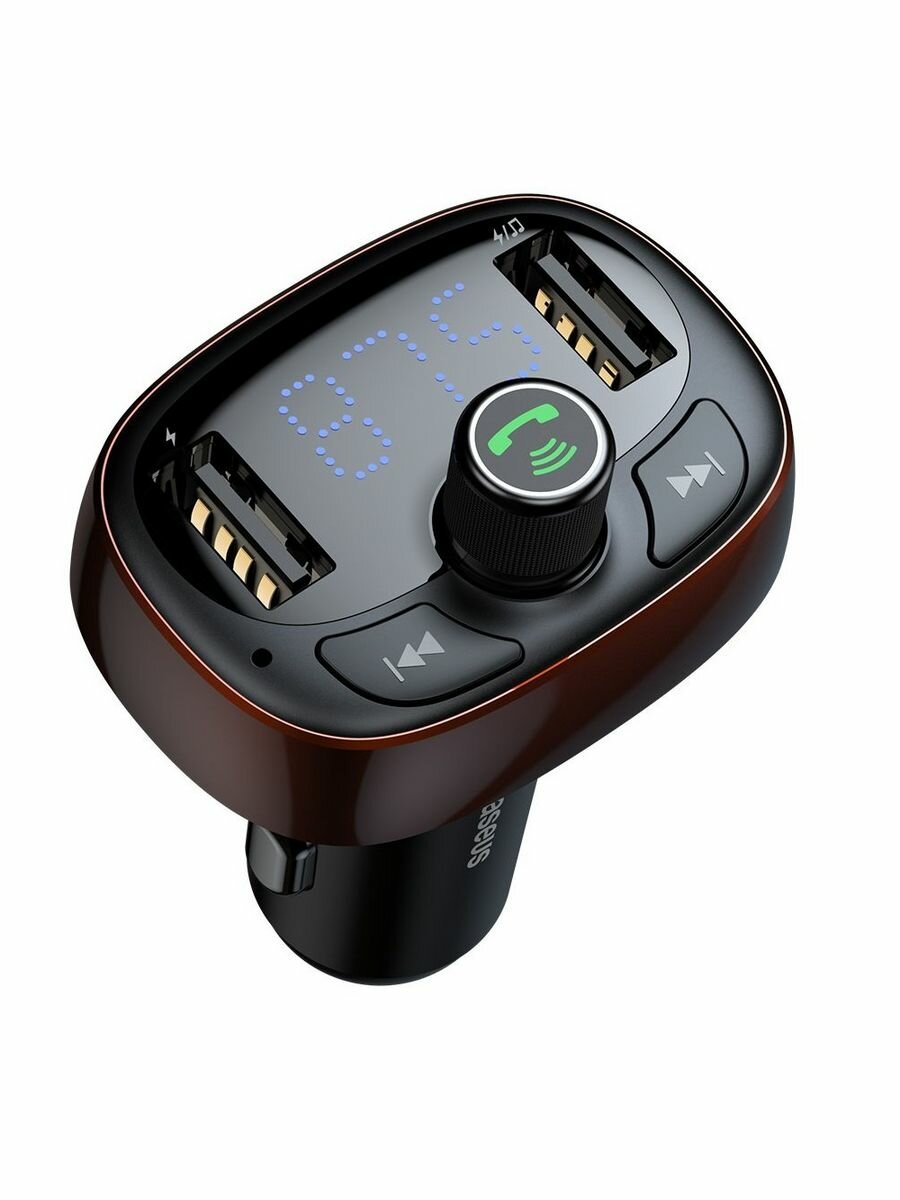 FM - Трансмиттер BASEUS T typed S-09, 2*USB, 3.4A, темный кофе, дисплей + Bluetooth, FM, SD/TF