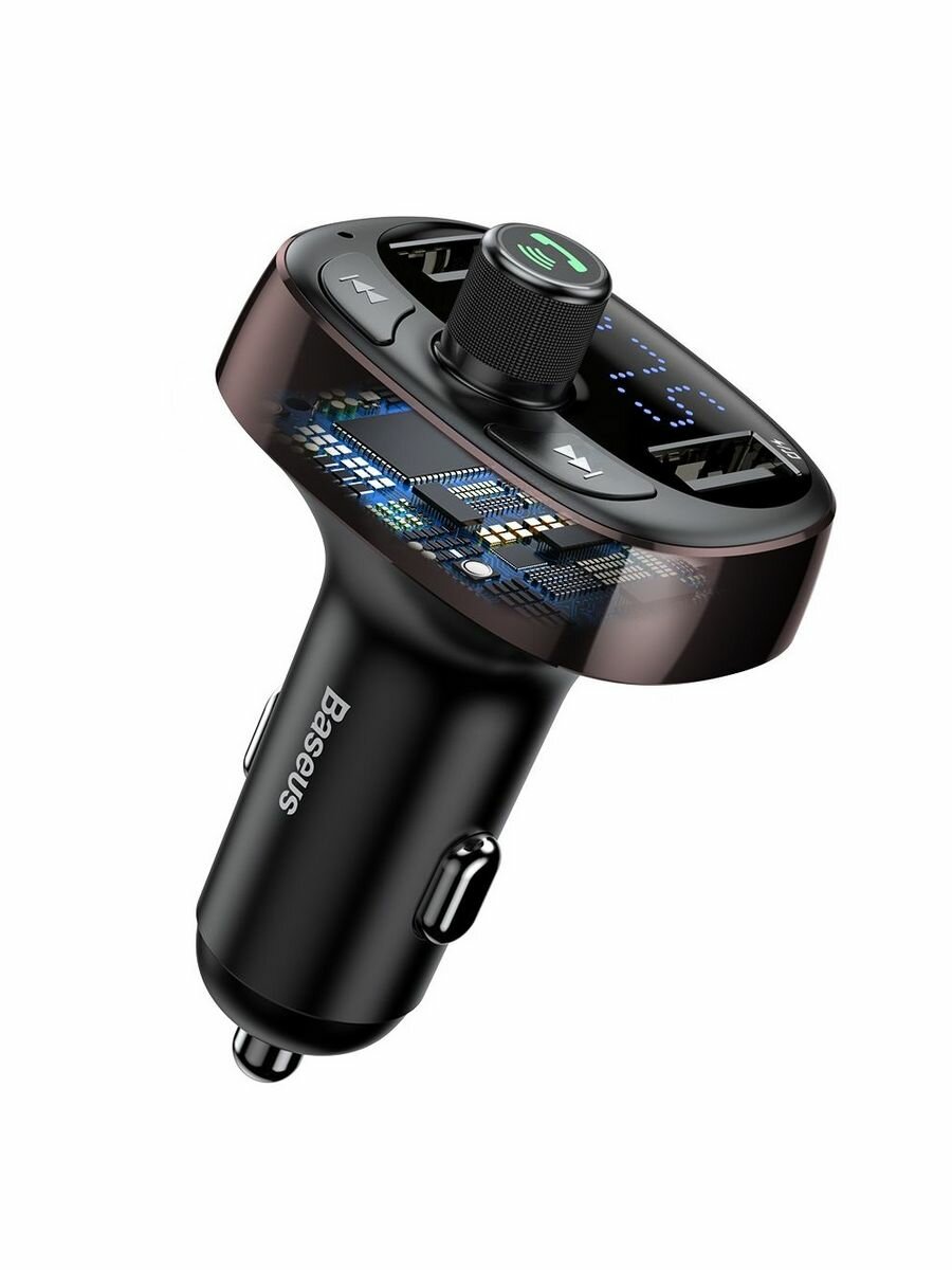 Автомобильное зарядное устройство BASEUS T typed S-09, 2*USB, 3.4A, черный, дисплей + Bluetooth, FM,