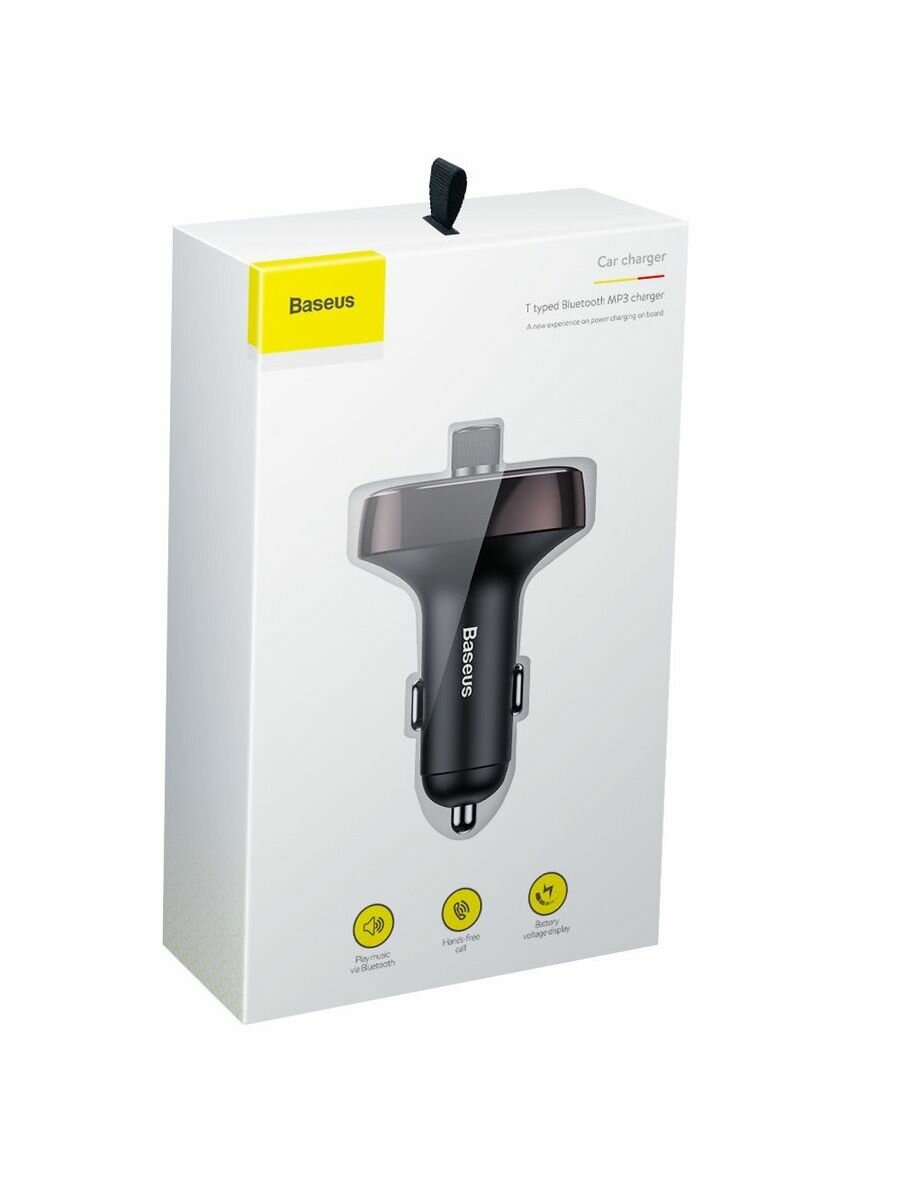 Автомобильное зарядное устройство Baseus T typed Bluetooth MP3 charger with car holder, черный