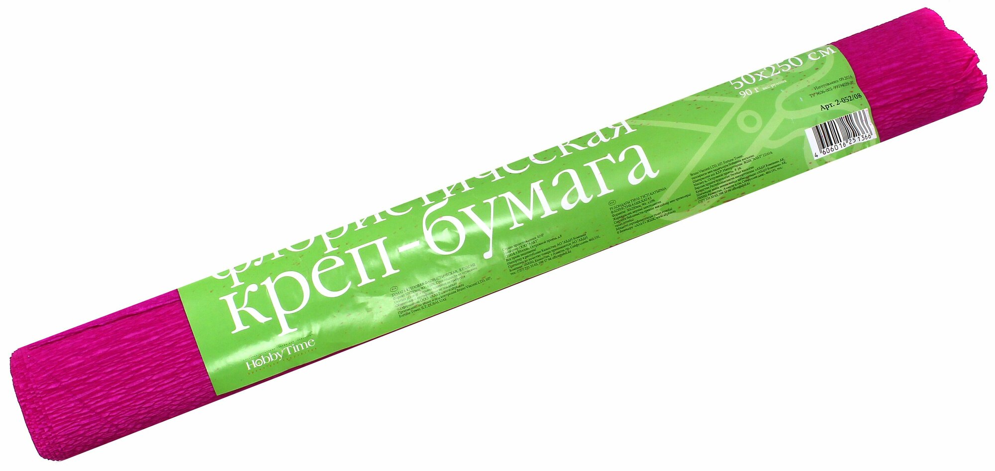 Цветная бумага крепированная Флористическая в рулоне Hobby Time, 50х250 см, 1 л. 1 л. , розовый