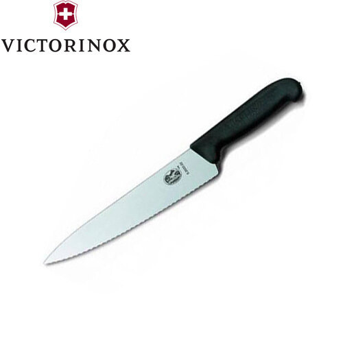 Нож Victorinox разделочный, лезвие 19 см волнистое, черный