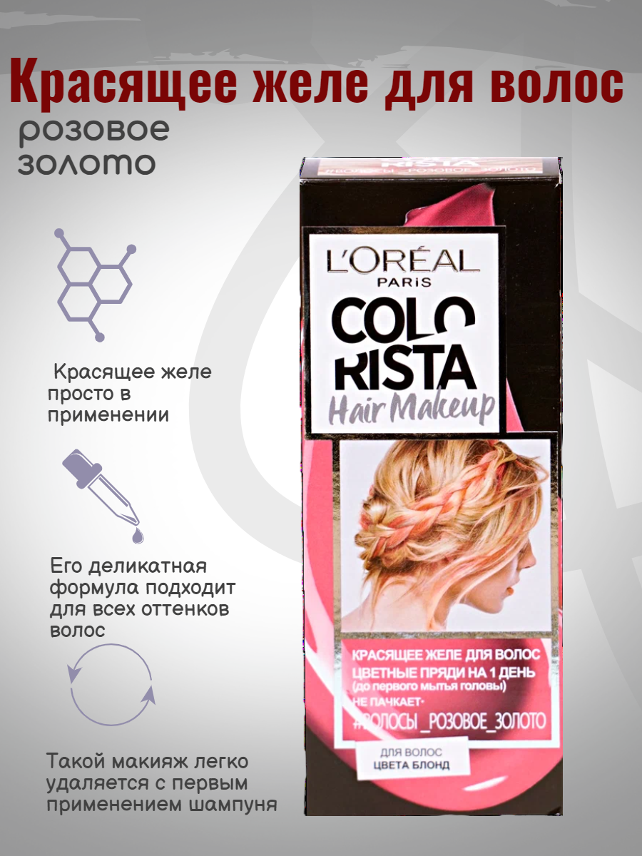 Красящее желе для волос L'Oreal Paris Colorista Hair Make Up, розовое золото, 30 мл интересное: