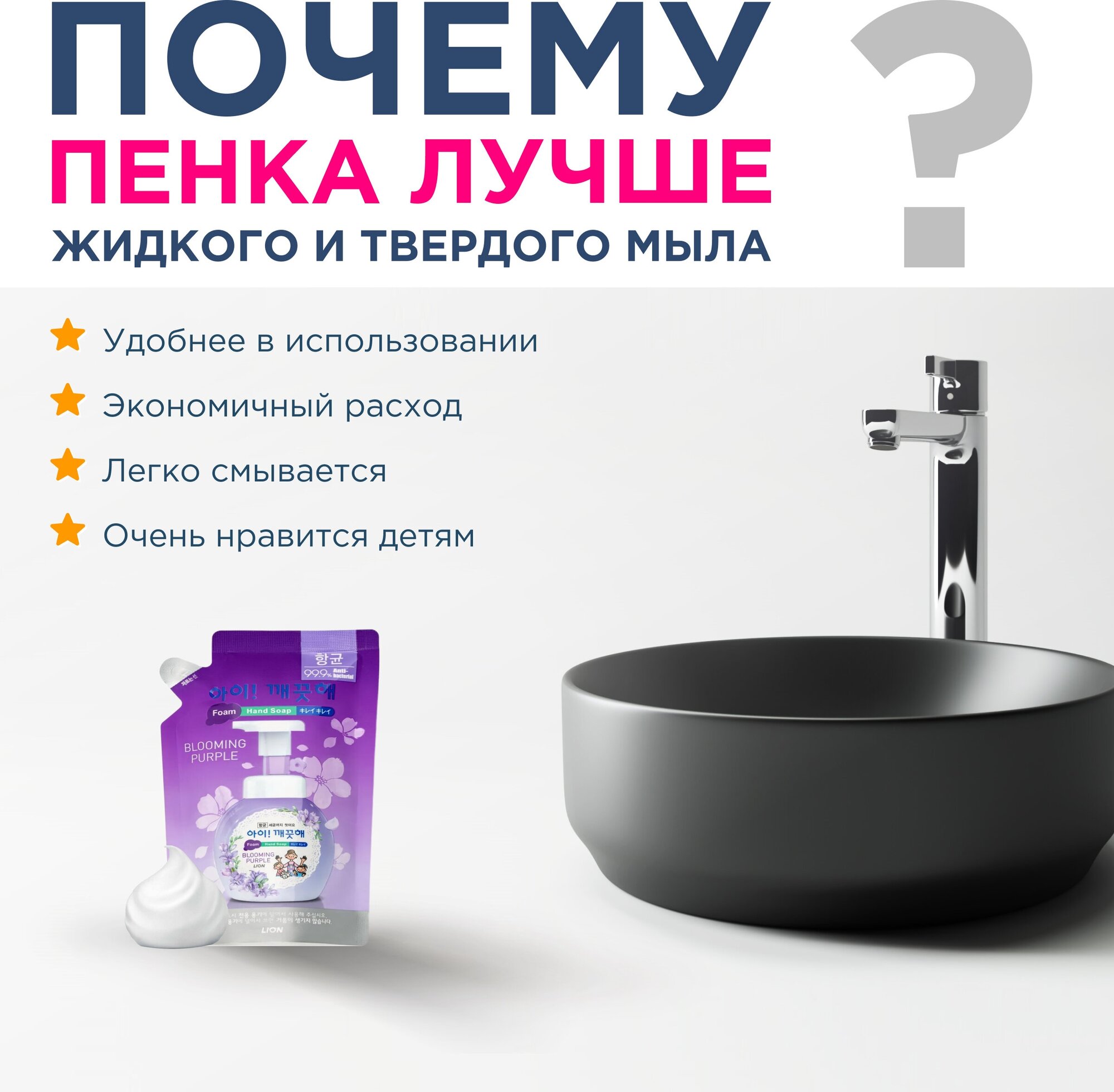 LION Ai kekute Foam handsoap blooming purple 200ml Жидкое пенное мыло для рук с ароматом фиалки 200мл