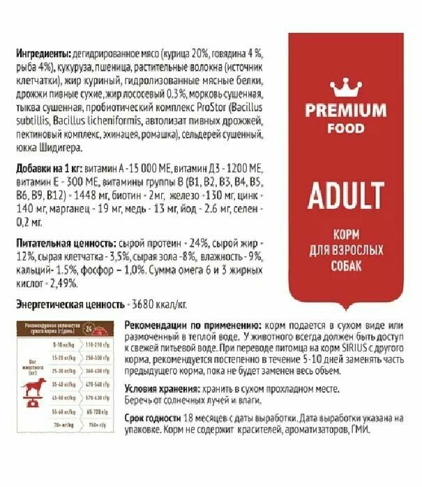 | Плюсы: | Отличный корм Сириус для крупных и средних собак. |
