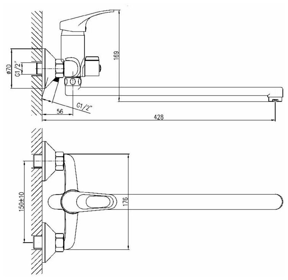 Смеситель Haiba HB2213, для ванны, одноручковый, с длинным поворотным изливом