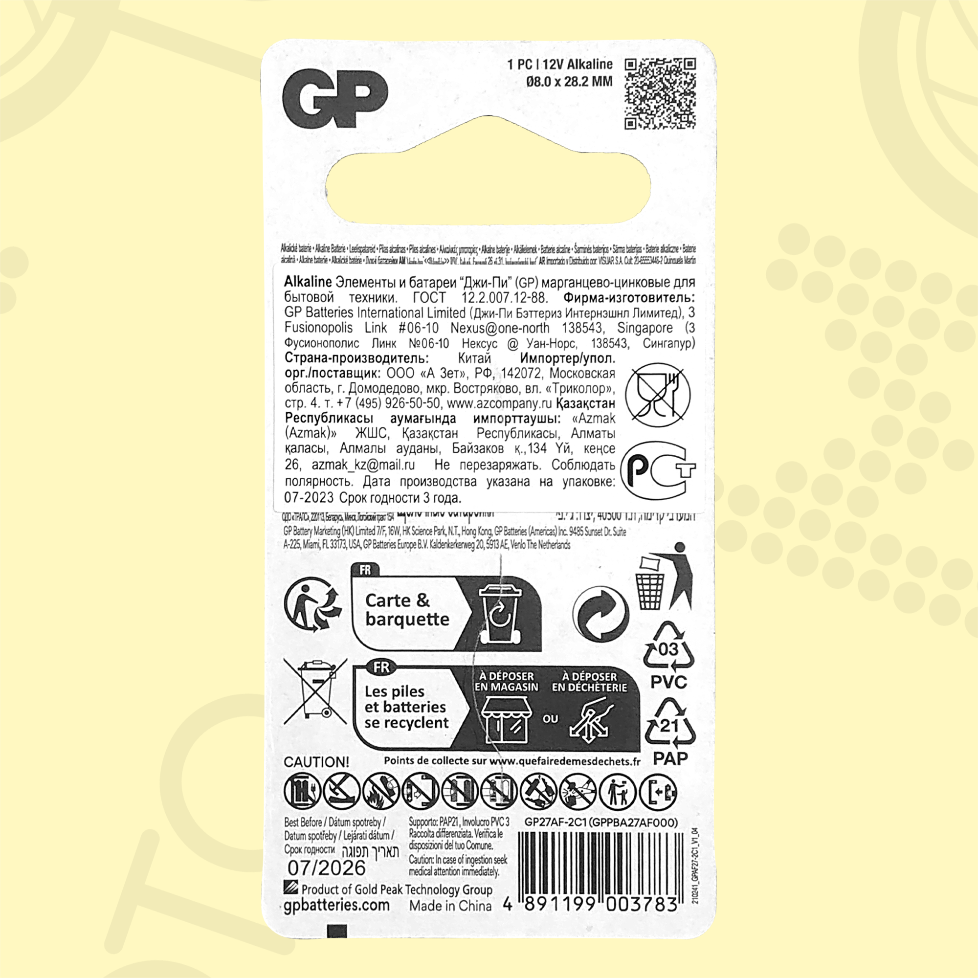 GP Высоковольтные батарейки 12В 27АF 27AFRA-2C5