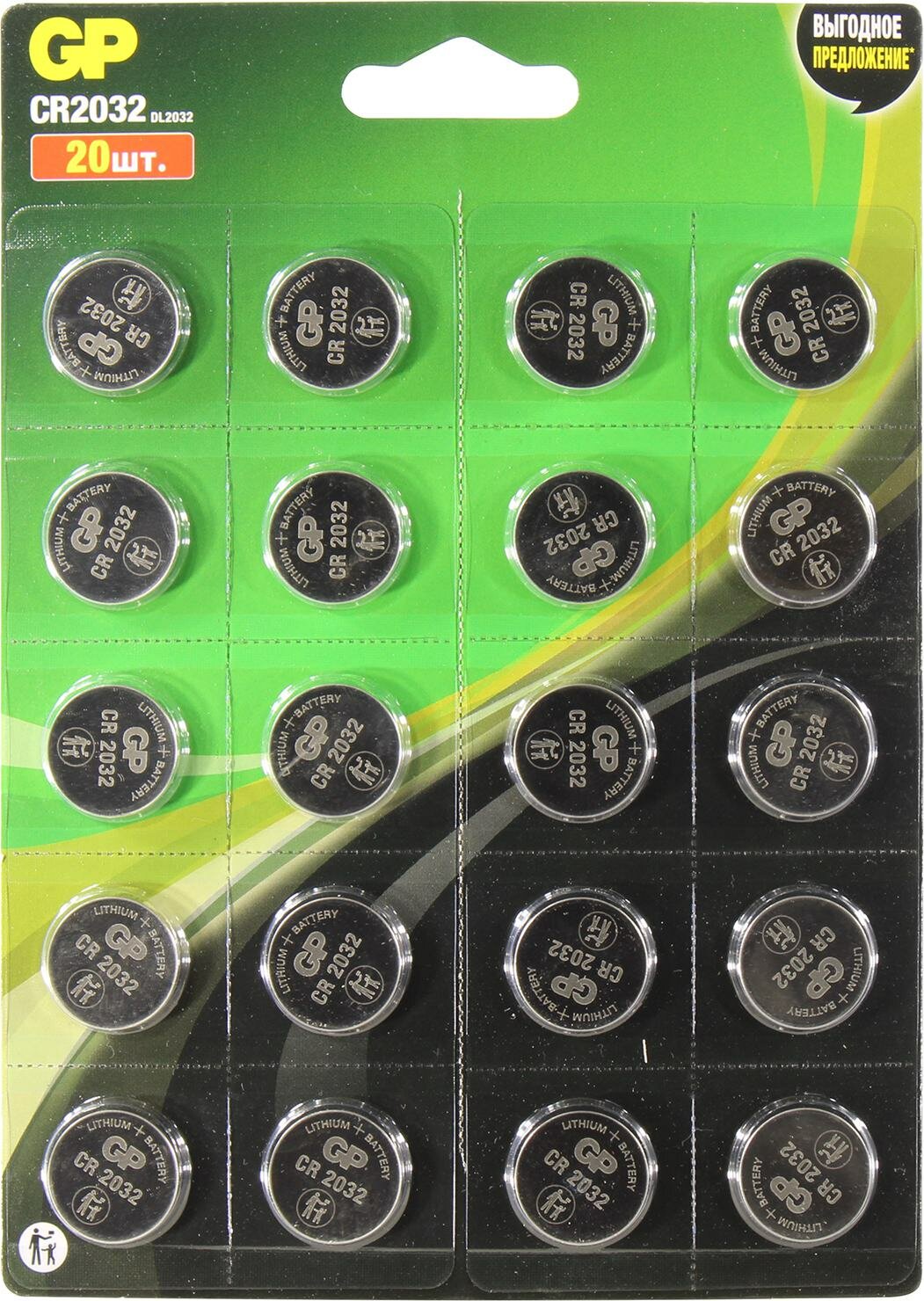 GP Литиевые дисковые батарейки lithium cr2032 - 20 шт., каждая в своем отрывном блистере CR2032-CRB20 GP CR2032-CRB20