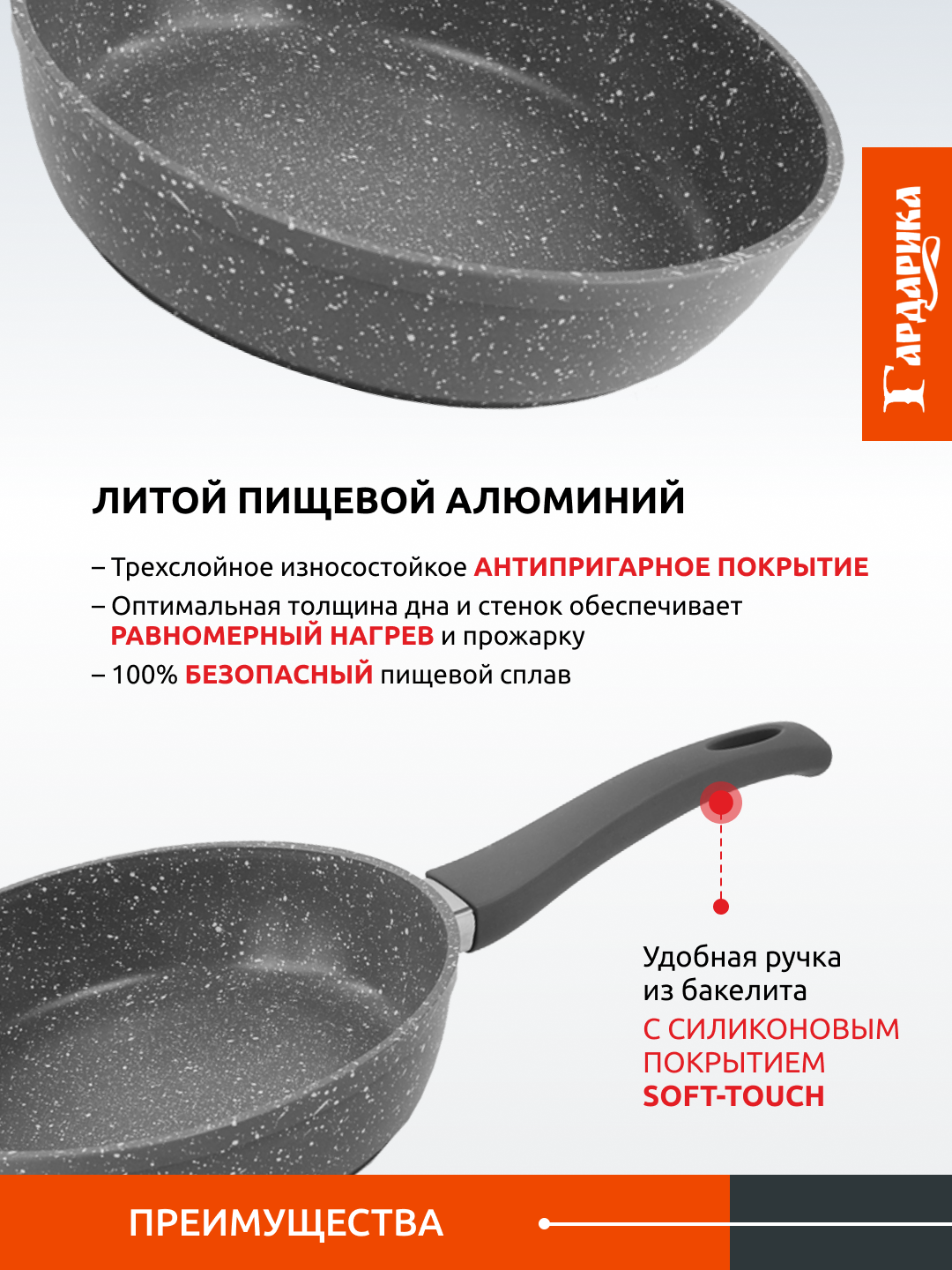 Сковорода Гардарика Гранит 26 см литая с усиленным антипригарным покрытием
