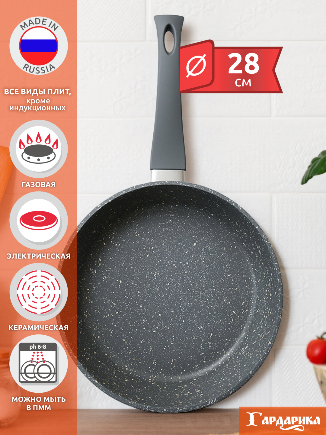 Сковорода Гардарика 1228-06 Гранит с ручкой soft-touch, 28см