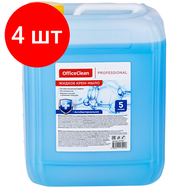Купить Комплект 4 шт, Мыло-крем жидкое OfficeClean Professional "Антибактериальное", нейтральное, канистра, 5л
